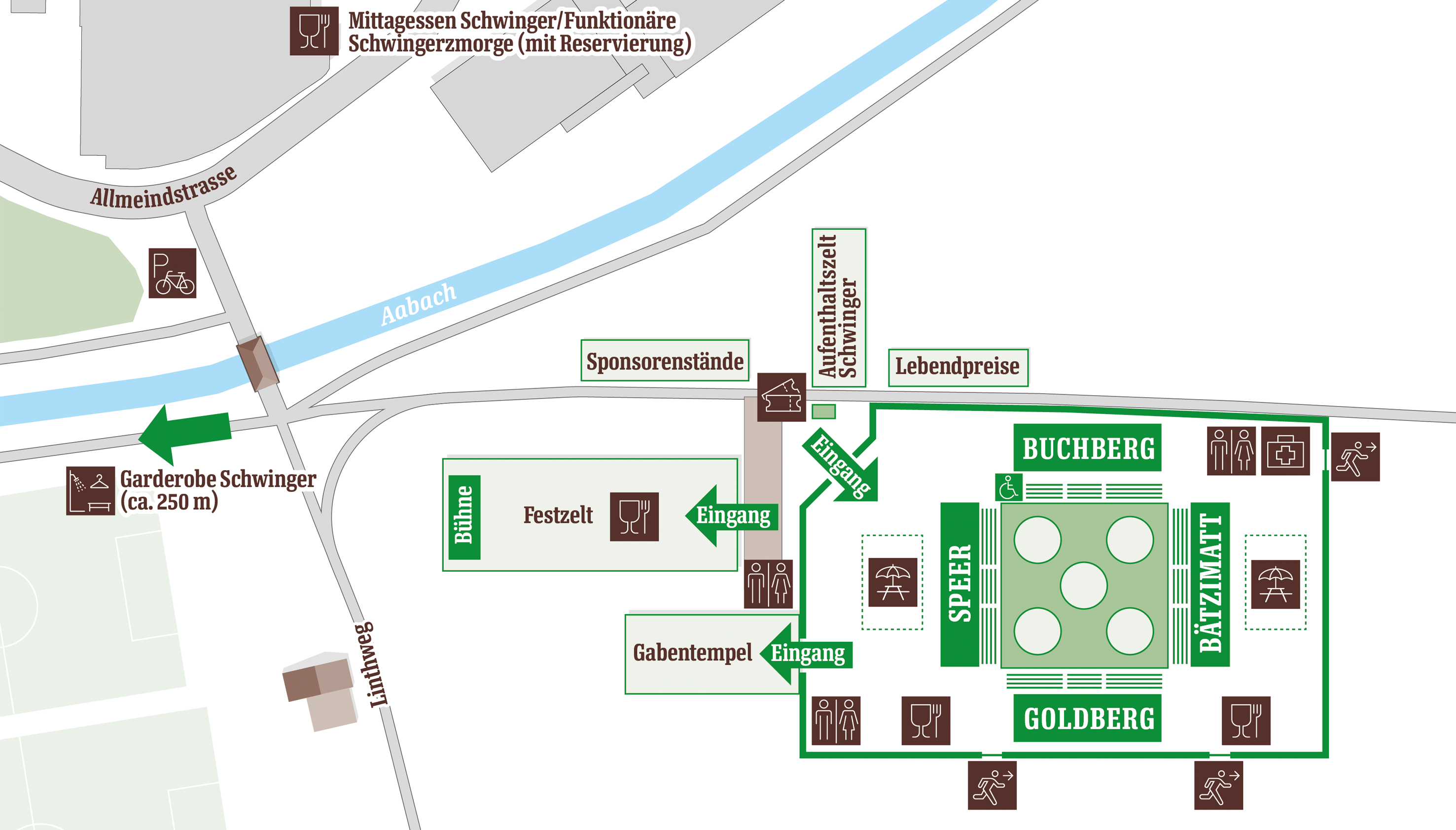 Wir empfehlen die Anreise mit öffentlichen Verkehrsmitteln. Der Bahnhof Schmerikon ist nur 10 Gehminuten vom Festgelände entfernt. Für Gäste aus St.Gallen und dem Toggenburg bestehen am Morgen und am Abend jeweils drei zusätzliche Direktverbindungen: Die S4 und der Voralpen-Express halten ausserordentlich in Schmerikon, sodass kein Umsteigen in Uznach nötig ist.